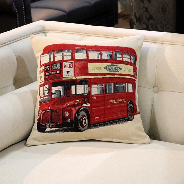 ポルトガルジャガード クッションカバー ロンドンバス 45×45