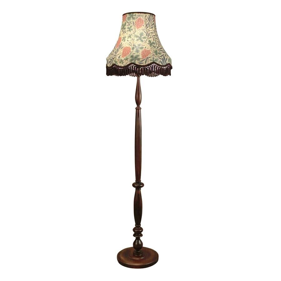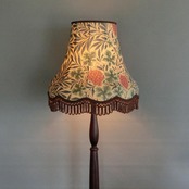 イギリスの伝統生地「ウィリアム・モリス」を使用して製作されたフロアランプ。