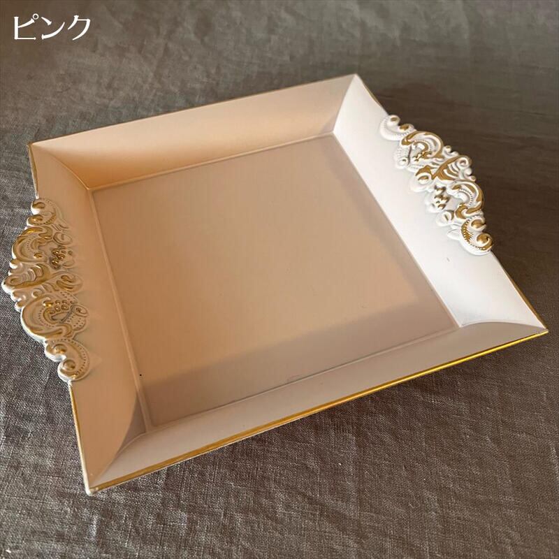 クラシカルな装飾が施されたインテリアトレイ。
