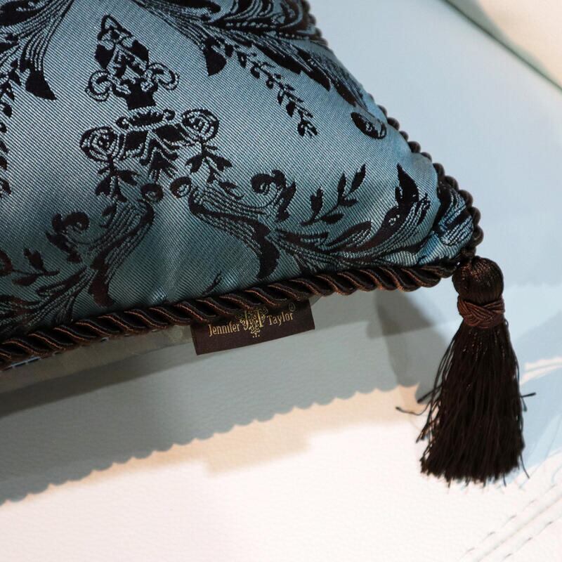 上品なダマスク柄の生地と、エレガントな四隅のタッセルが魅力です。