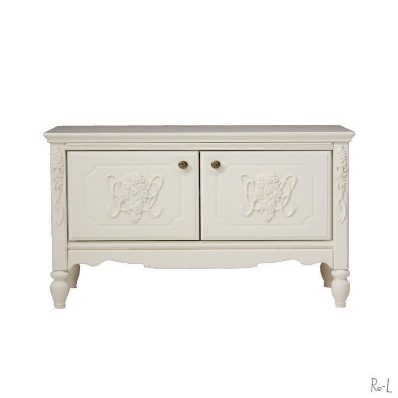 エレガントな薔薇のレリーフ、モールディング、玉脚など、細部にまでこだわったデコラティブなデザインが特徴的なRe-L SHOPオリジナル白家具シリーズ。高級感溢れる大人の仕上がりで、お部屋を美しく彩ります。
