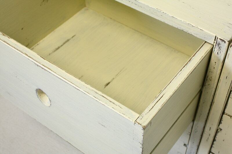 アンティーク剥がし加工をなしにする対応が可能になりました。 アンティークテイストはそのままに下地のダーク色が見えないホワイトの仕上がりとなります。 追加費用なし。