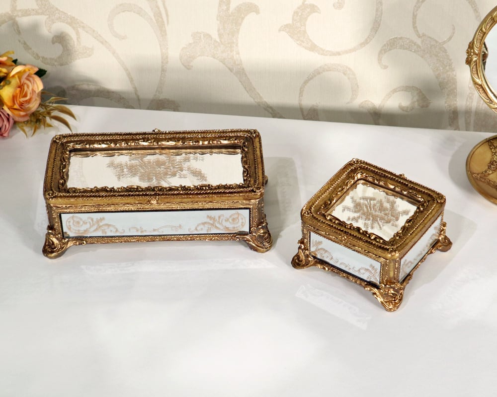 繊細なゴールド装飾が美しい、アンティーク調の小物入れ。
