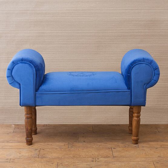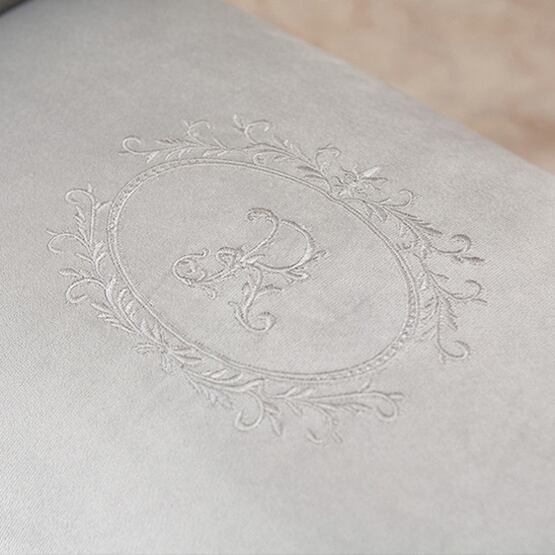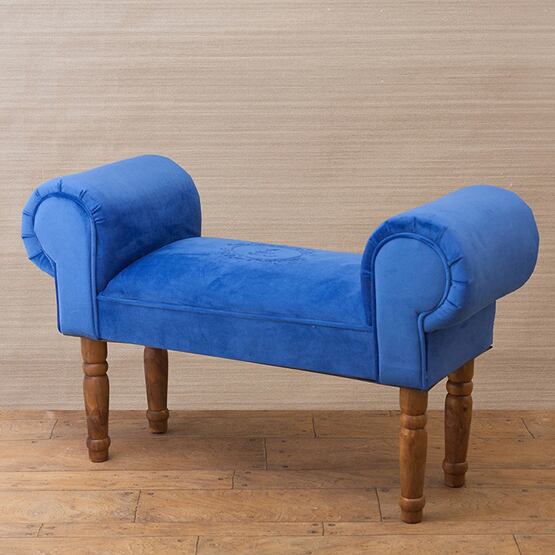 上品なロールアームと、美しい刺繍デザインが印象的なアームスツール。