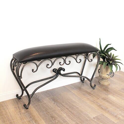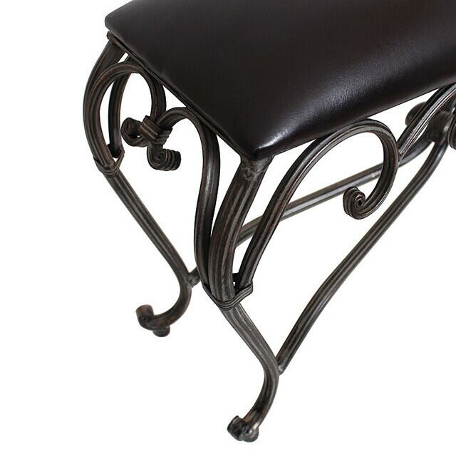 ゆったりと弧を描いたような美しいアイアンデザインのロングスツール。