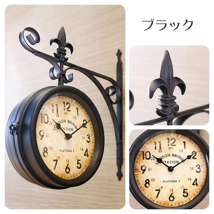 壁掛け両面時計 ステーションクロック 3色より選択 RE1508-20