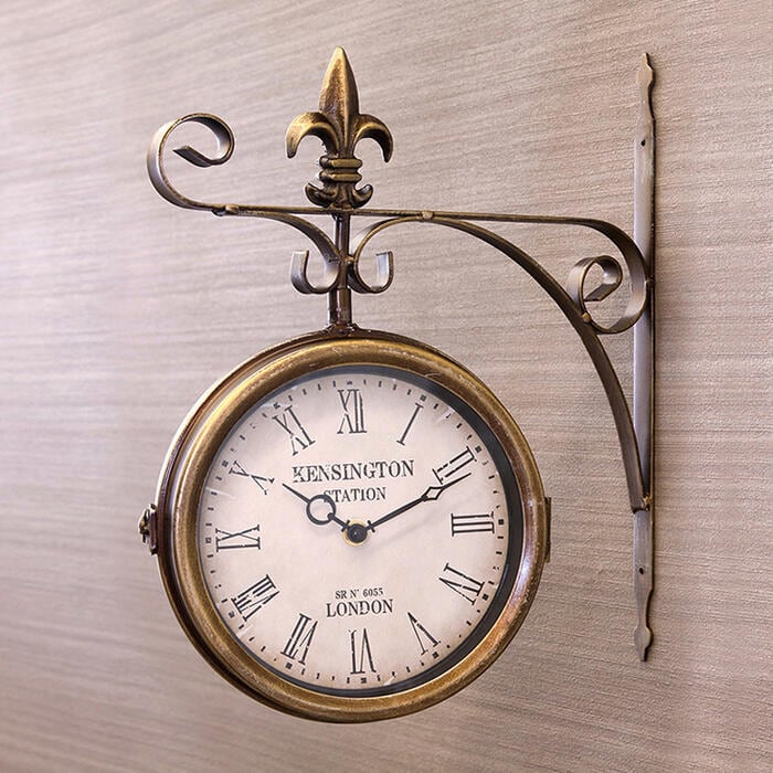 外国の駅やお家で見かけそうな雰囲気のある壁掛け両面時計。