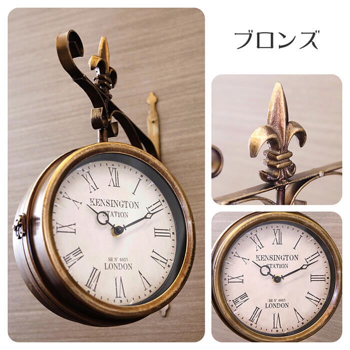 お洒落なアンティーク仕上げで、文字盤はどちらも時間を確認しやすいデザインです。