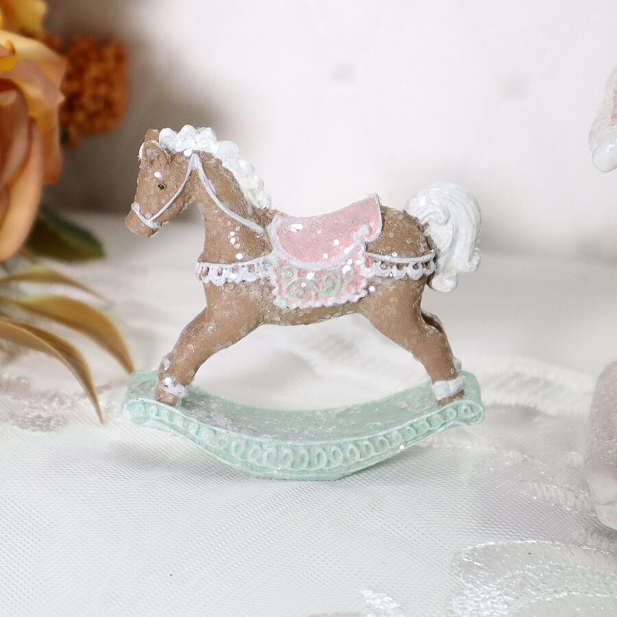 ツリー、木馬、ハウスの3点それぞれが異なる形で、並べるだけで可愛いミニチュアの世界が完成。キラキラとしたグリッターが輝き、冬のディスプレイをより華やかに演出します。