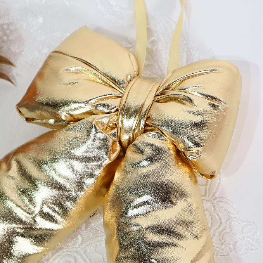 上品な輝きを放つゴールドのリボン型オーナメント。