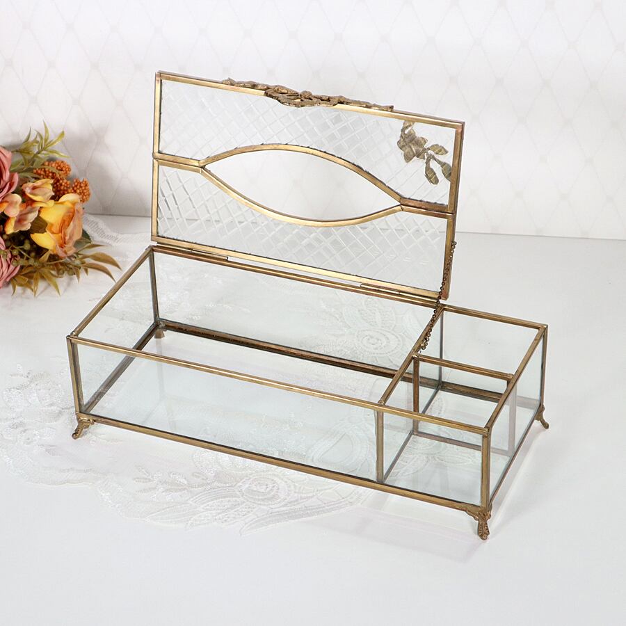 クラシカルな真鍮装飾が美しいティッシュケース。