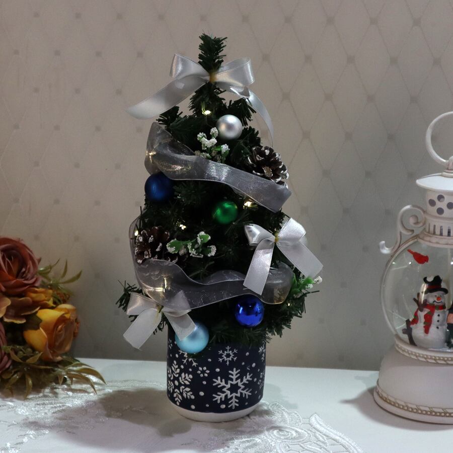 上品なリボンとオーナメントが彩る、コンパクトな卓上ツリー。