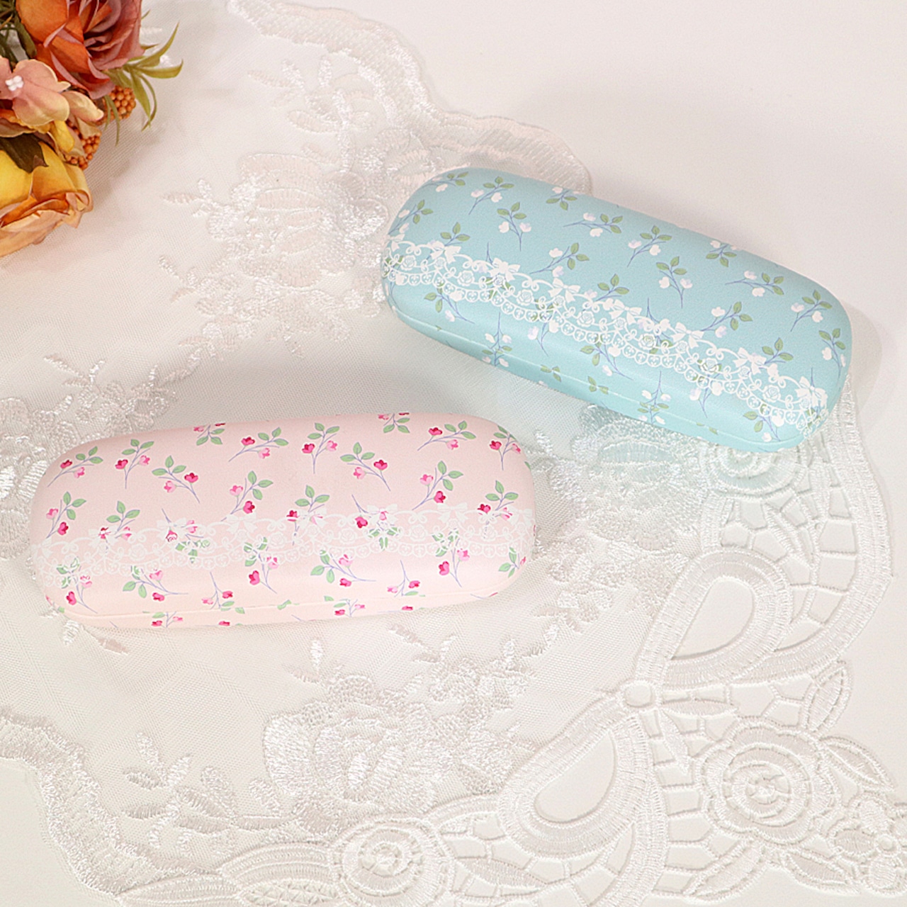 繊細な小花柄とレース風のラインをあしらった上品な眼鏡ケース。