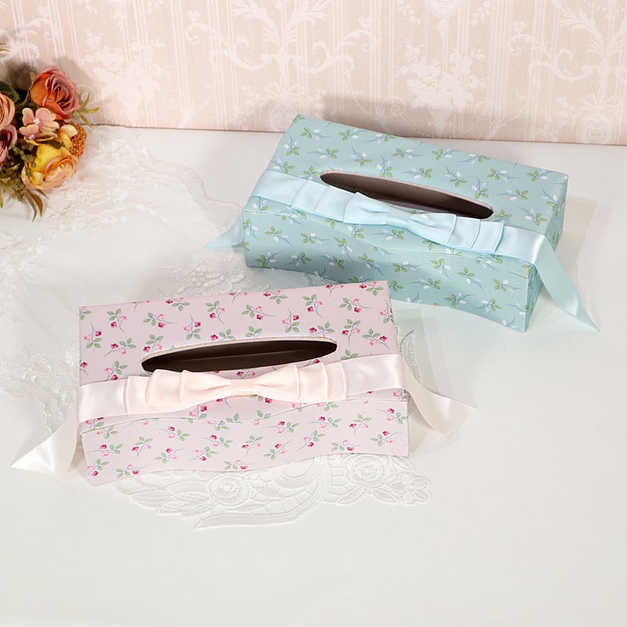 小花柄とサテンリボンが可愛らしいフェミニンなティッシュケースカバー。