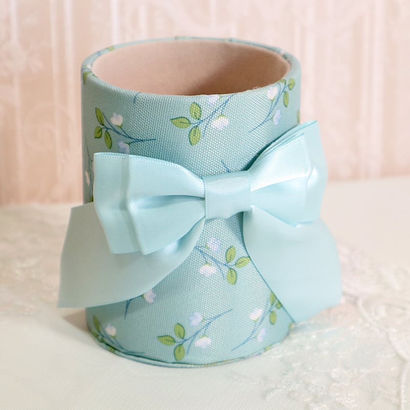 ふんわりとしたリボンと小花柄が愛らしい、エレガントなペンホルダー。
