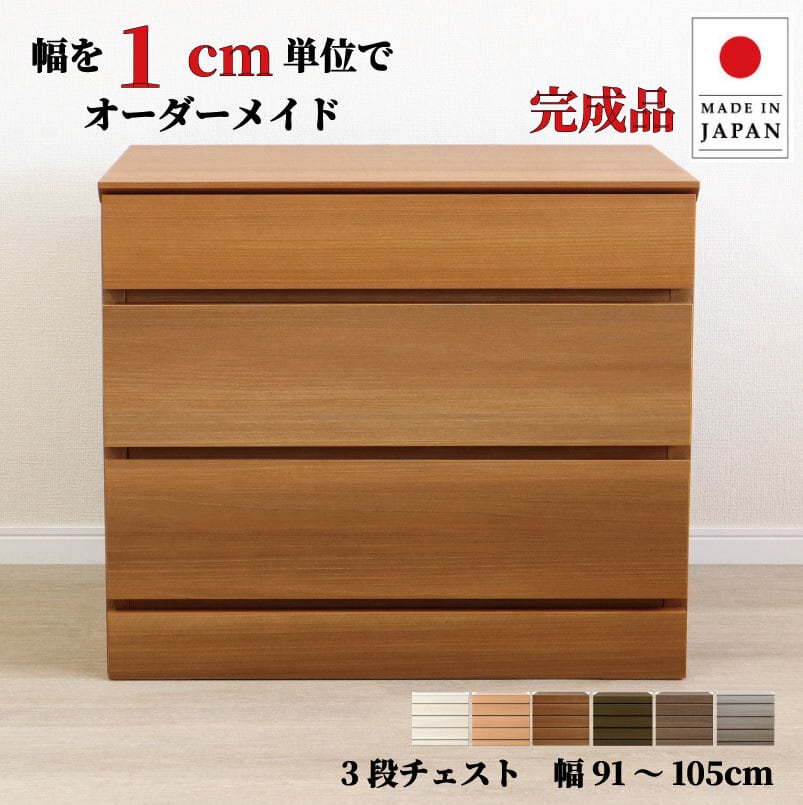 チョイスト 3段チェスト 幅91~105cm 高さ1cm単位でオーダー可能!日本製・職人仕上げ 奥行30/35/43.5cm対応