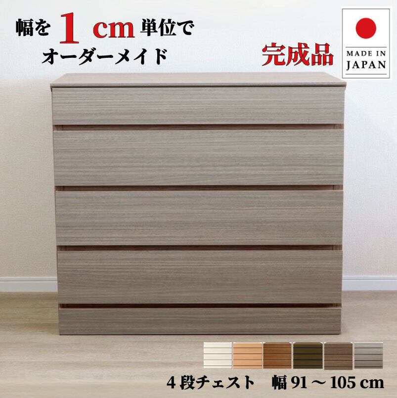 チョイスト 4段チェスト 幅91~105cm 高さ1cm単位でオーダー可能!日本製・職人仕上げ 奥行30/35/43.5cm対応