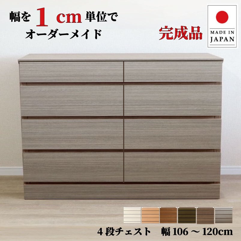 チョイスト 4段チェスト 幅106~120cm 高さ1cm単位でオーダー可能!日本製・職人仕上げ奥行30/35/43.5cm対応