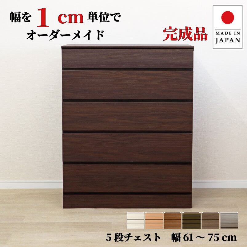 チョイスト 5段チェスト 幅61~75cm 高さ1cm単位でオーダー可能!日本製・職人仕上げ 奥行30/35/43.5cm対応