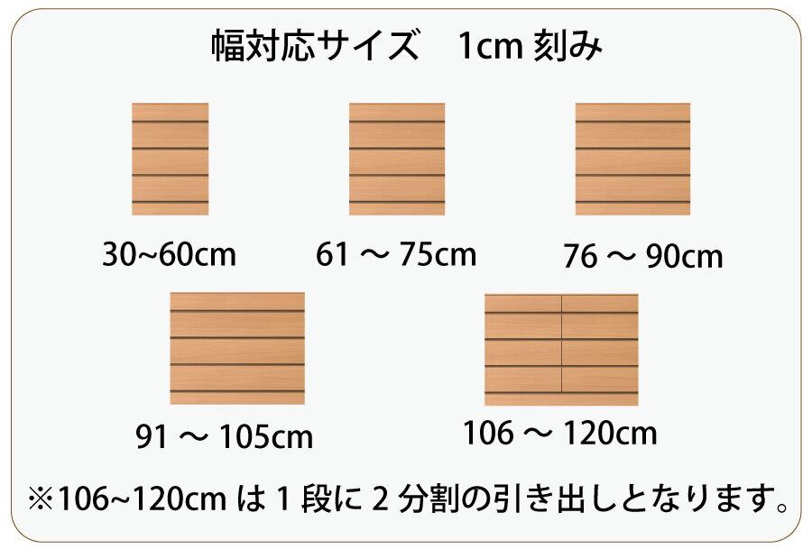 ※幅は1cm変われば引き出し内寸の幅も1cm変わります。