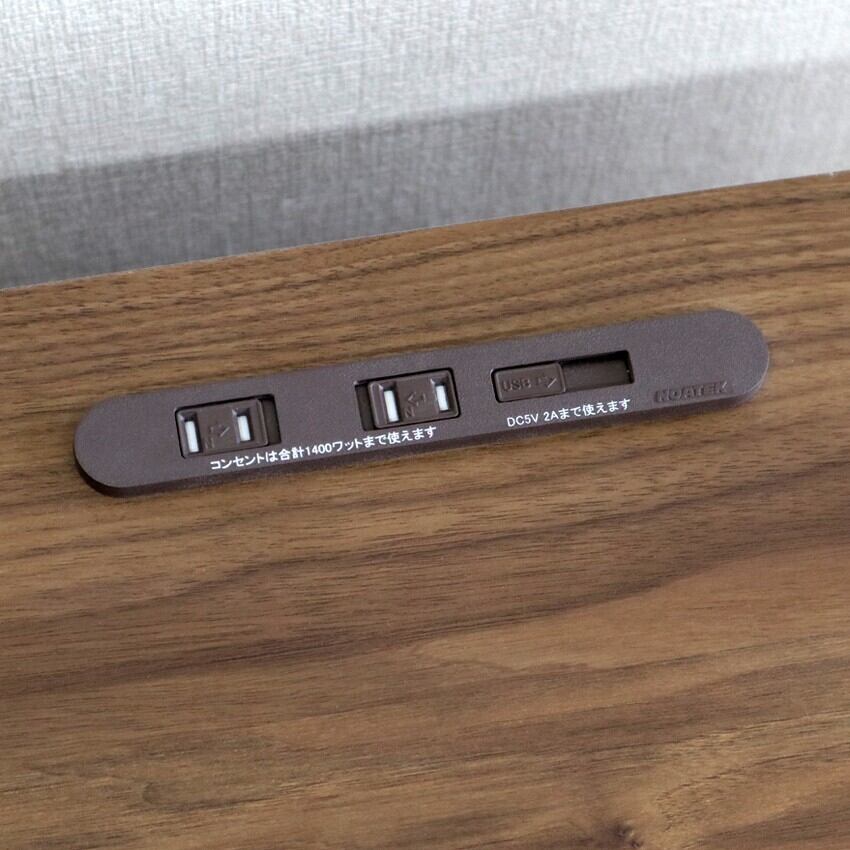 ■天板にはコンセント:2個口(1400Wまで)、USBポート(type‐A、2A出力)を埋め込み