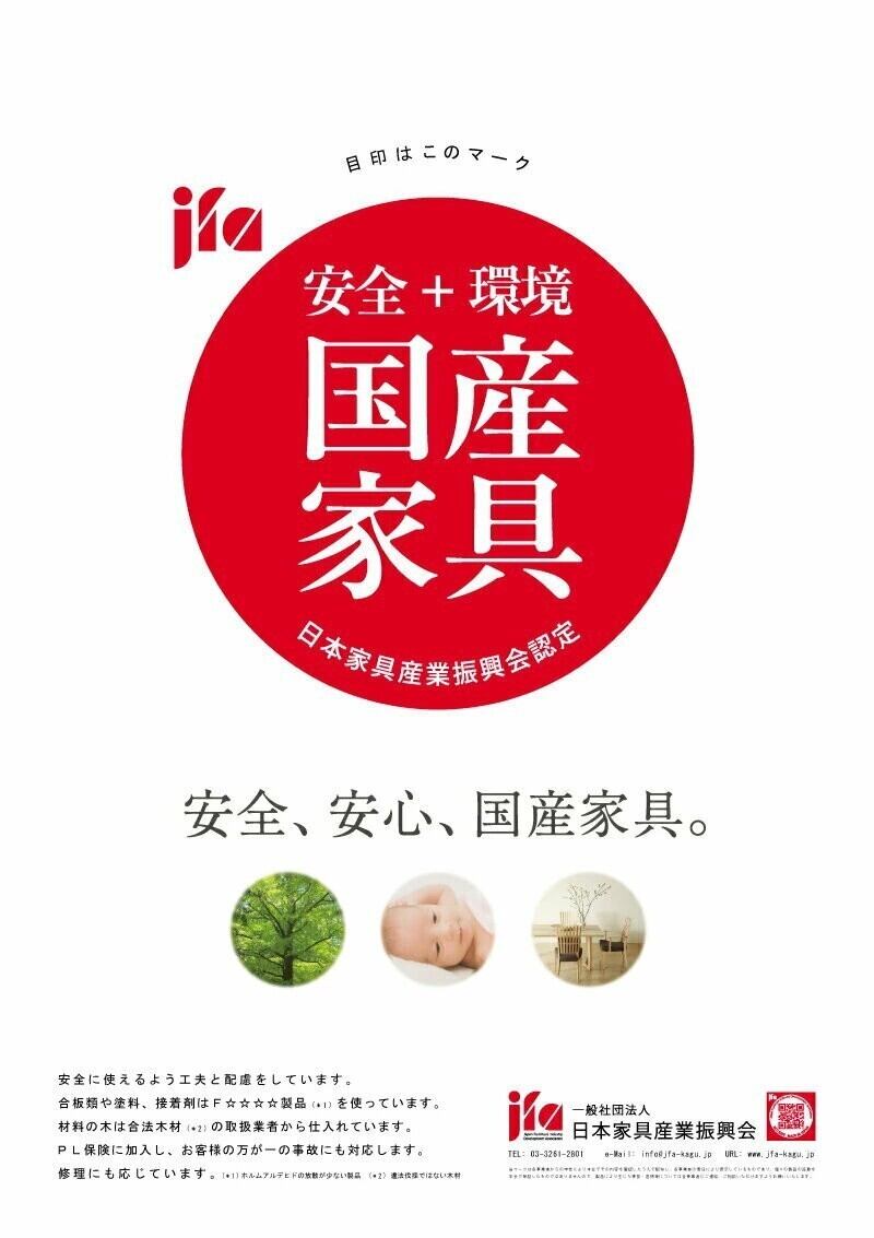 健康家具仕様/生活環境に配慮して合板・MDF・接着剤・塗料などの製品材料にホルムアルデヒド放出量を抑えたF☆☆☆☆(JIS・JAS規格)を使用しています。