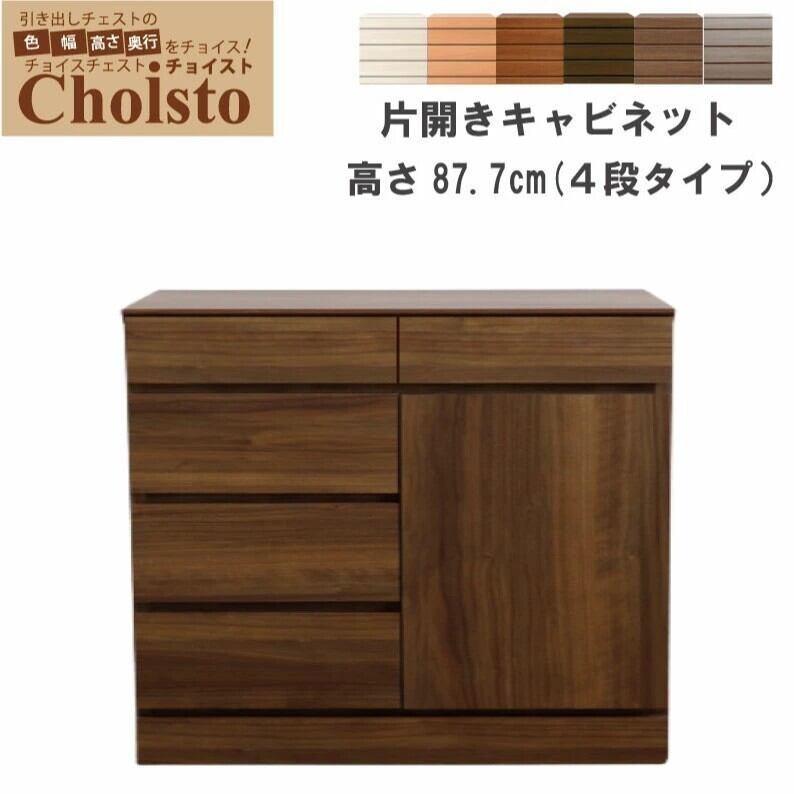 【チョイスト 4段片開きキャビネット 幅106~120cm】奥行30/35/43.5cm対応 扉左右選択可 サイズオーダー家具