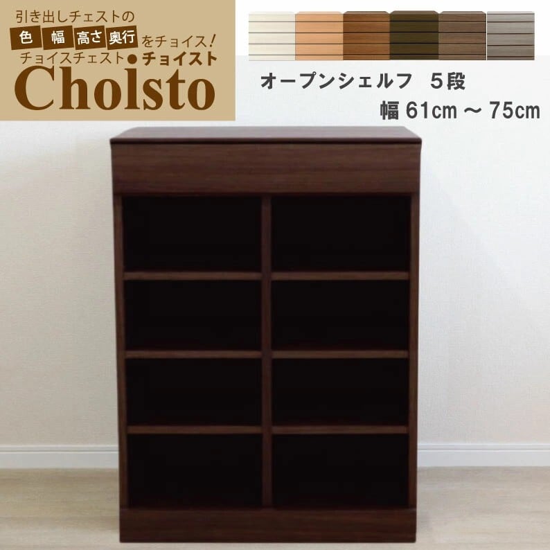 【チョイスト 5段オープンシェルフ 幅61~75cm】 奥行30/35/43.5cm対応 サイズオーダー家具
