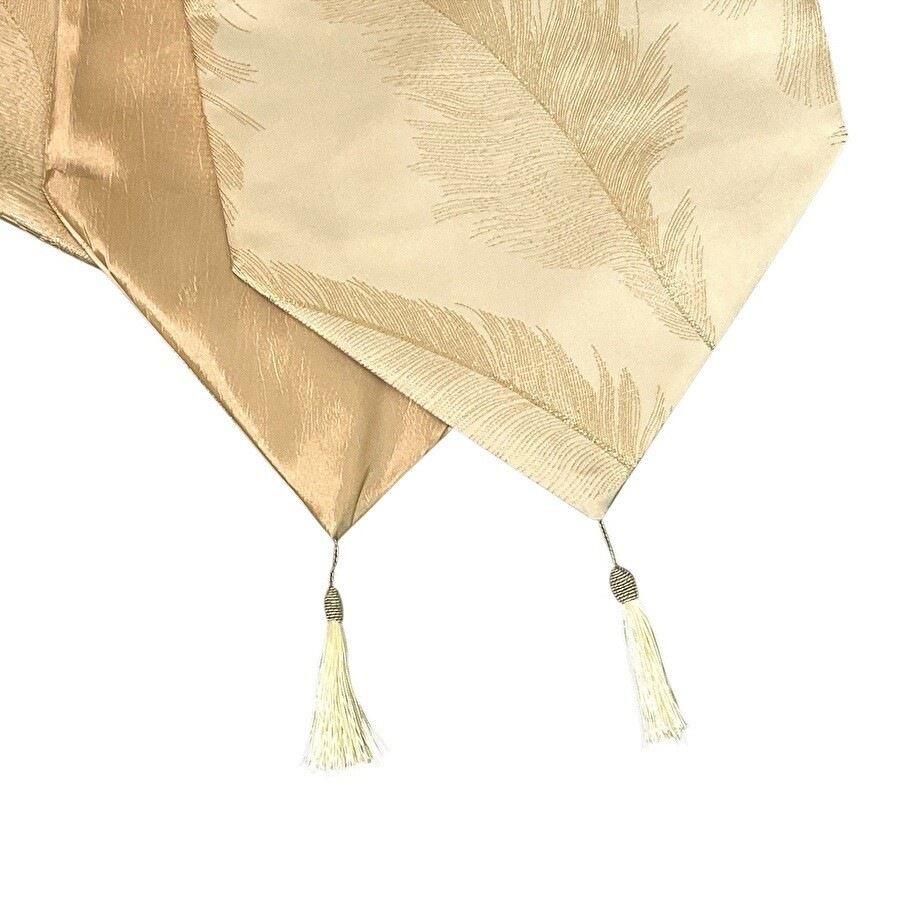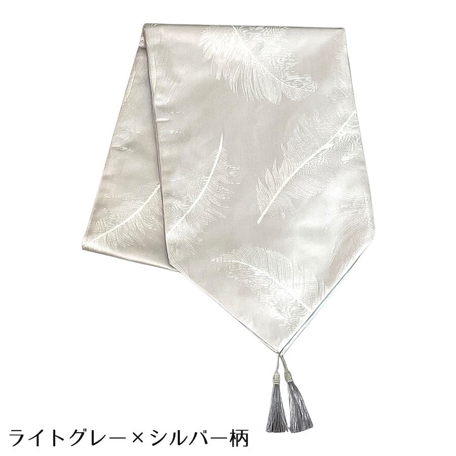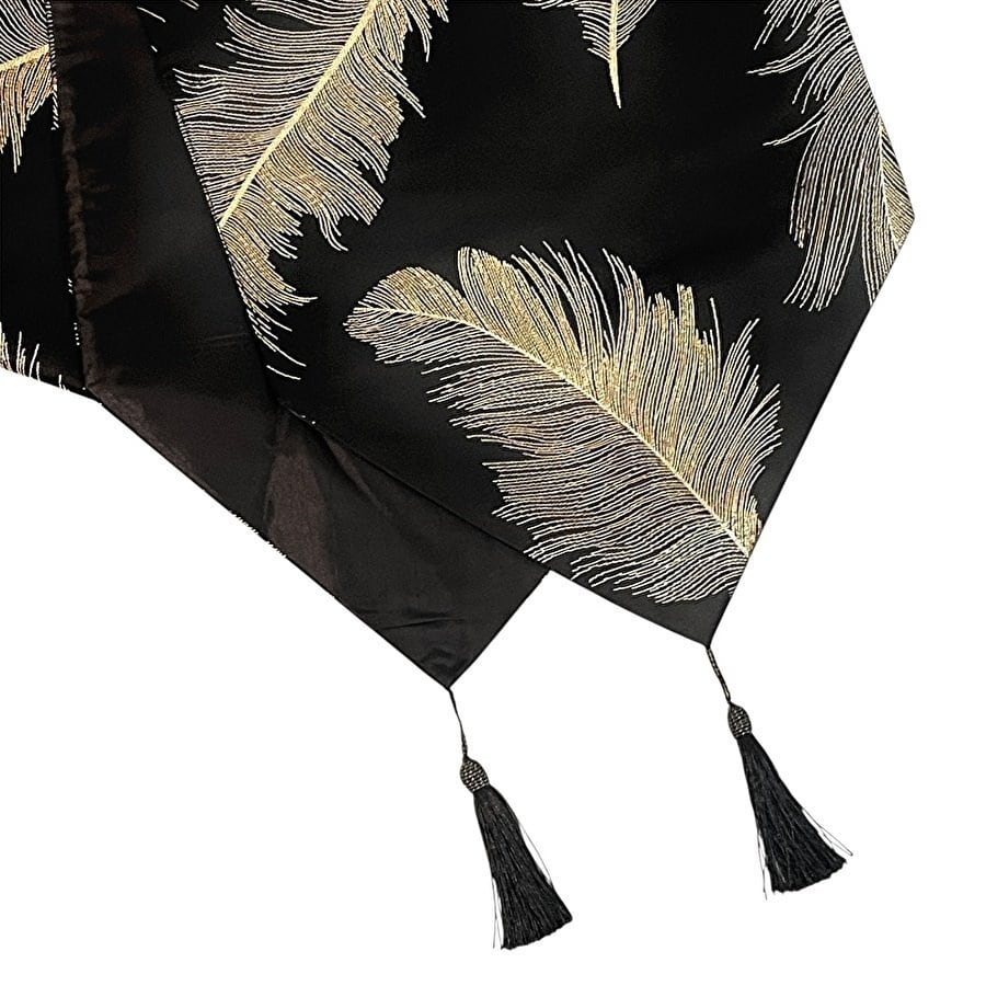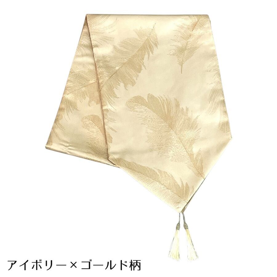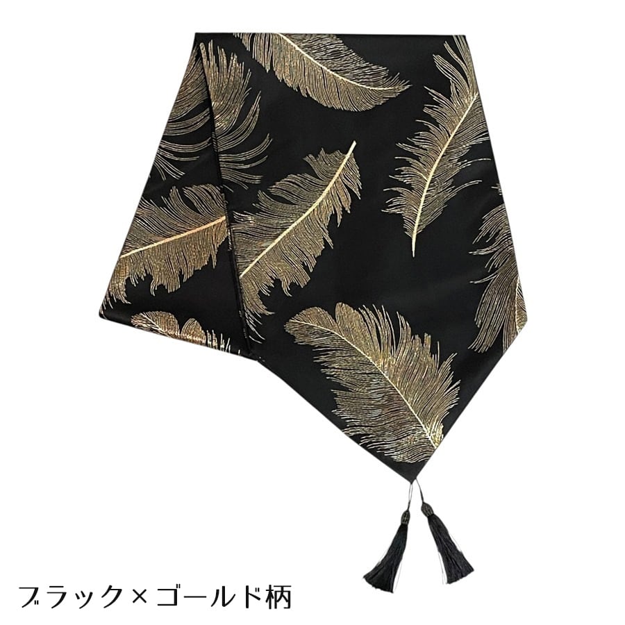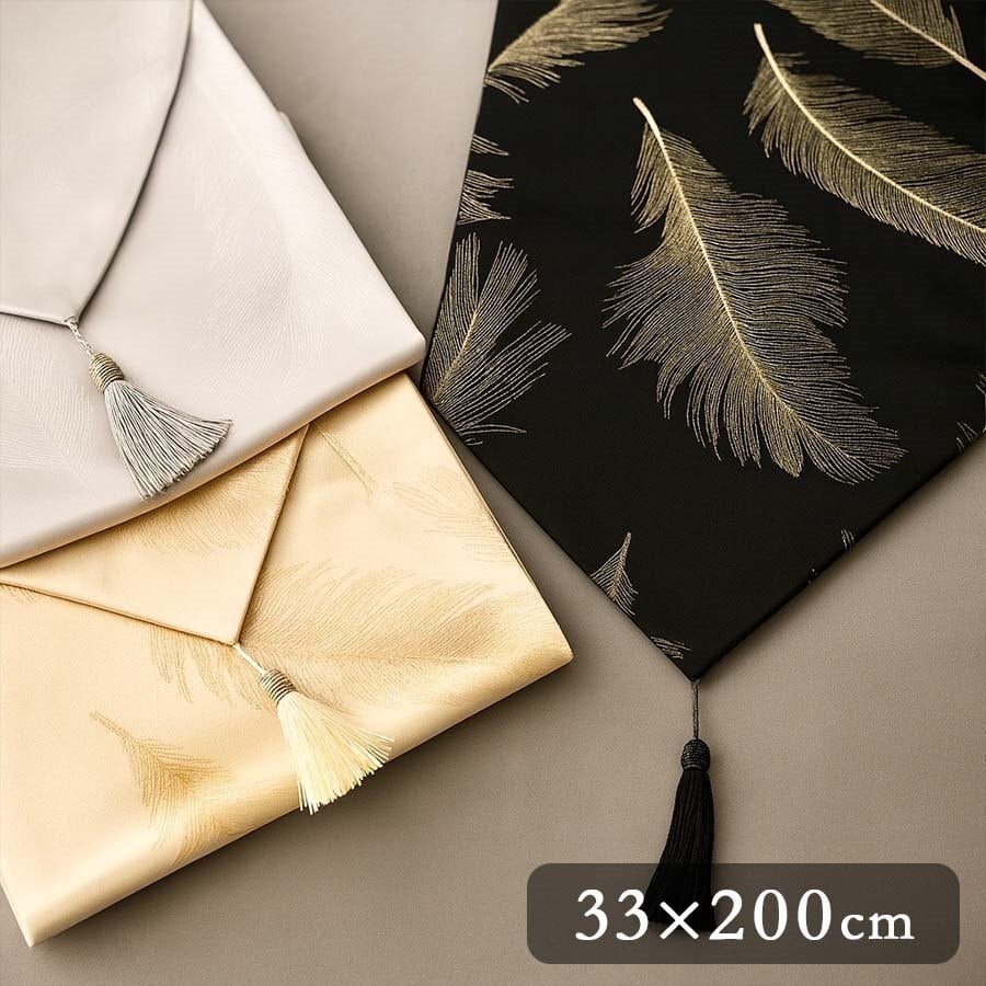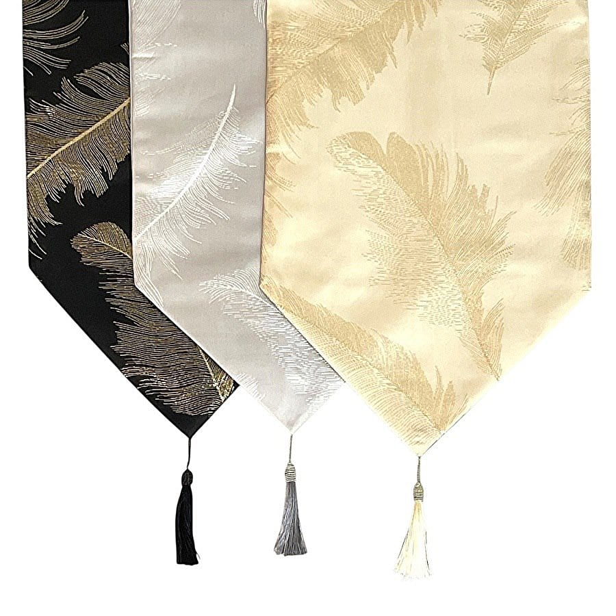 テーブルランナー フェザー柄 タッセル付き ゴールド シルバー ブラック アイボリー
