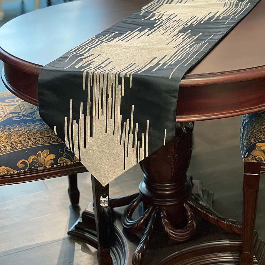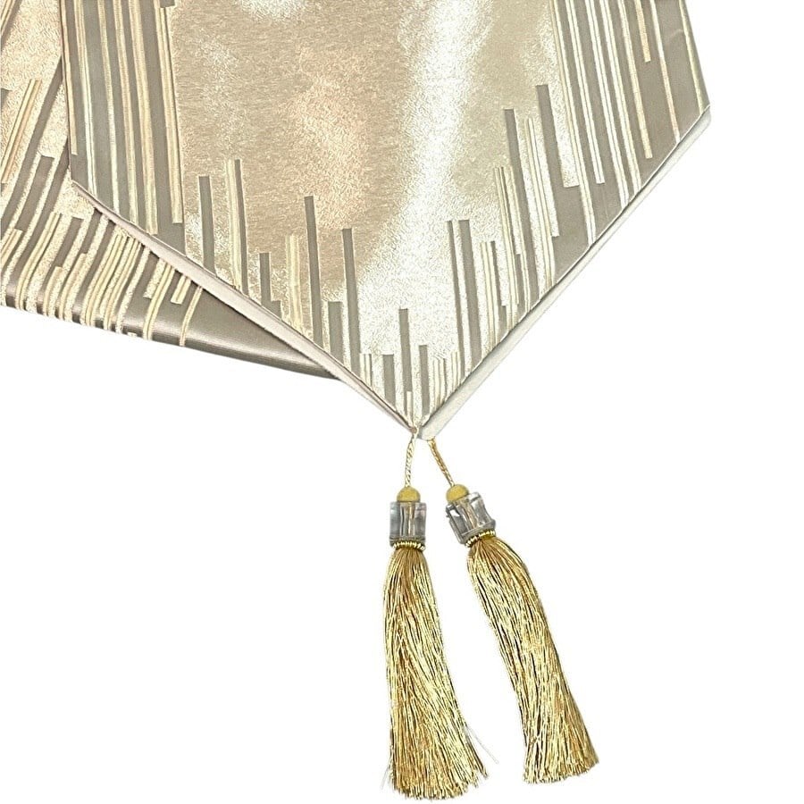 両端には存在感のあるタッセルをあしらい、テーブルコーディネートのアクセントに。敷くだけで空間が引き締まり、特別感のある演出が叶います。