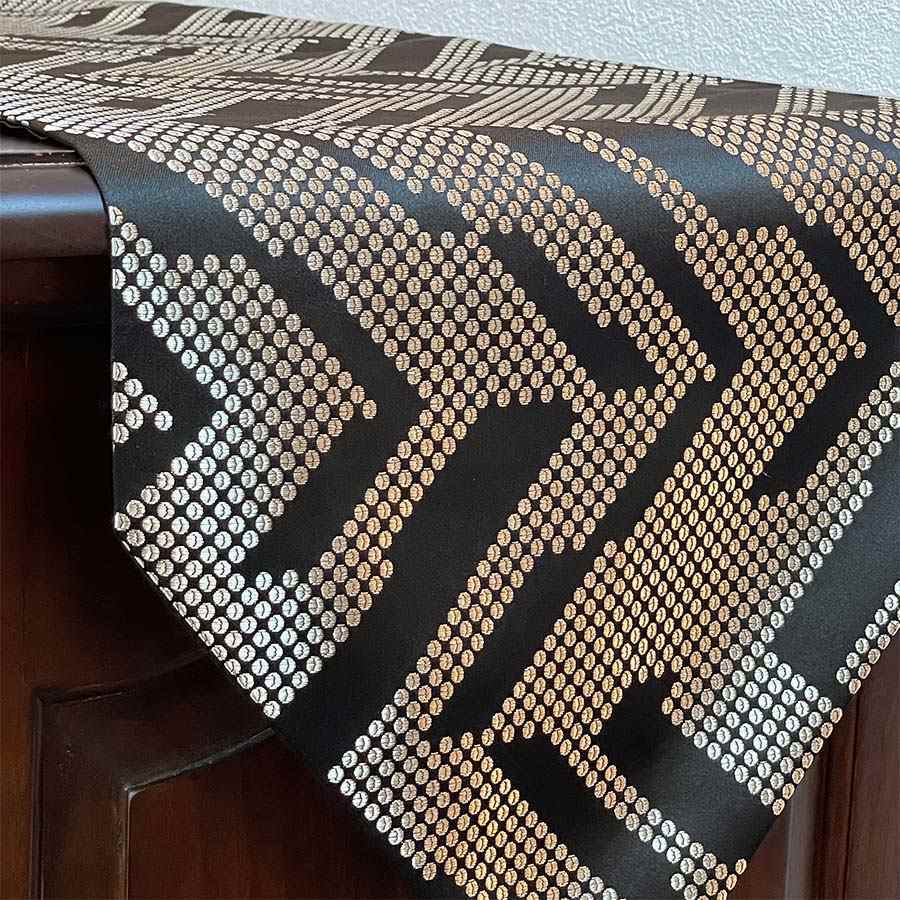 ドット柄の幾何学模様が印象的なテーブルランナー。