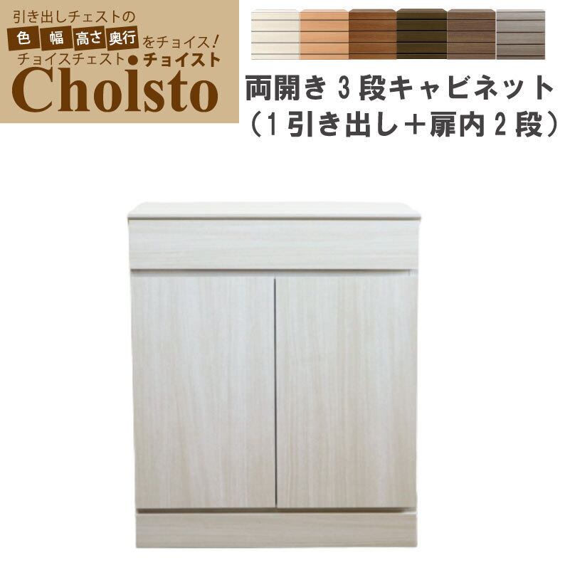 チョイスト 3段両開きキャビネット(引き出し1段+扉内2段タイプ)幅60cm