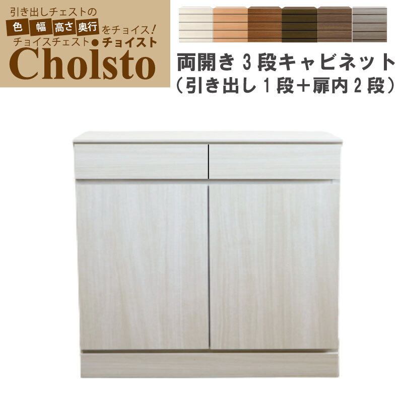 チョイスト 3段両開きキャビネット(引き出し1段+扉内2段タイプ)幅106~120cm