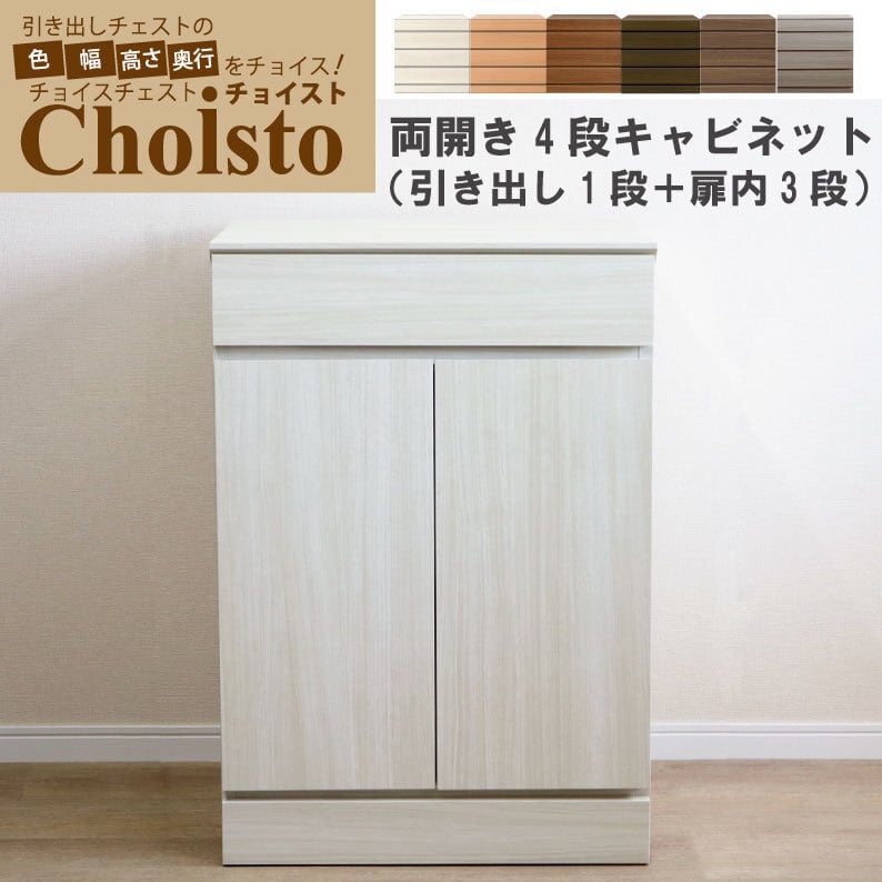 チョイスト 4段両開きキャビネット(引き出し1段+扉内3段タイプ)幅61~75cm