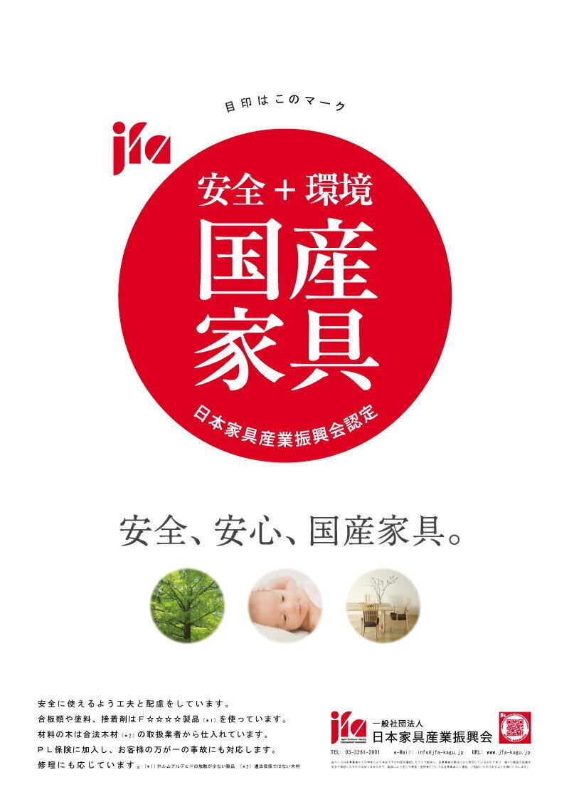 健康家具仕様 生活環境に配慮して合板・MDF・接着剤・塗料などの製品材料にホルムアルデヒド放出量を抑えたF☆☆☆☆(JIS・JAS規格)を使用しています。