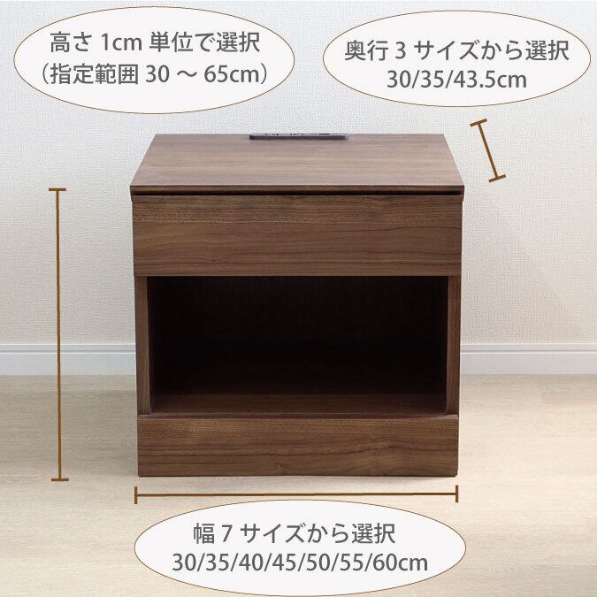 チョイスト ナイトテーブル 幅55cm 高さ30~45cm 奥行43.5cm/35cm/30cmより選択 サイズオーダー ベッドサイド 日本製