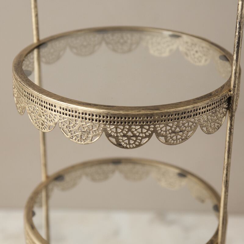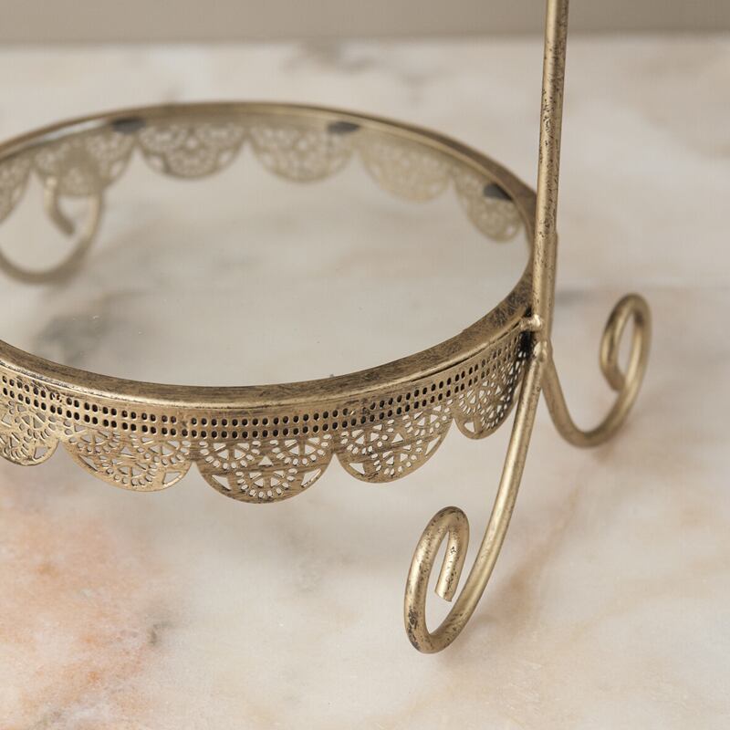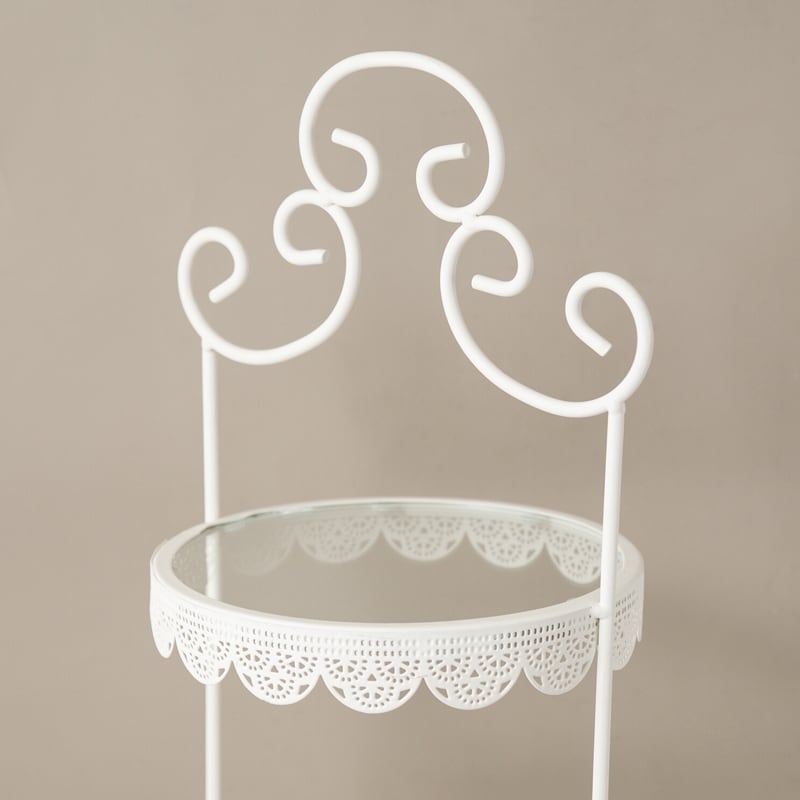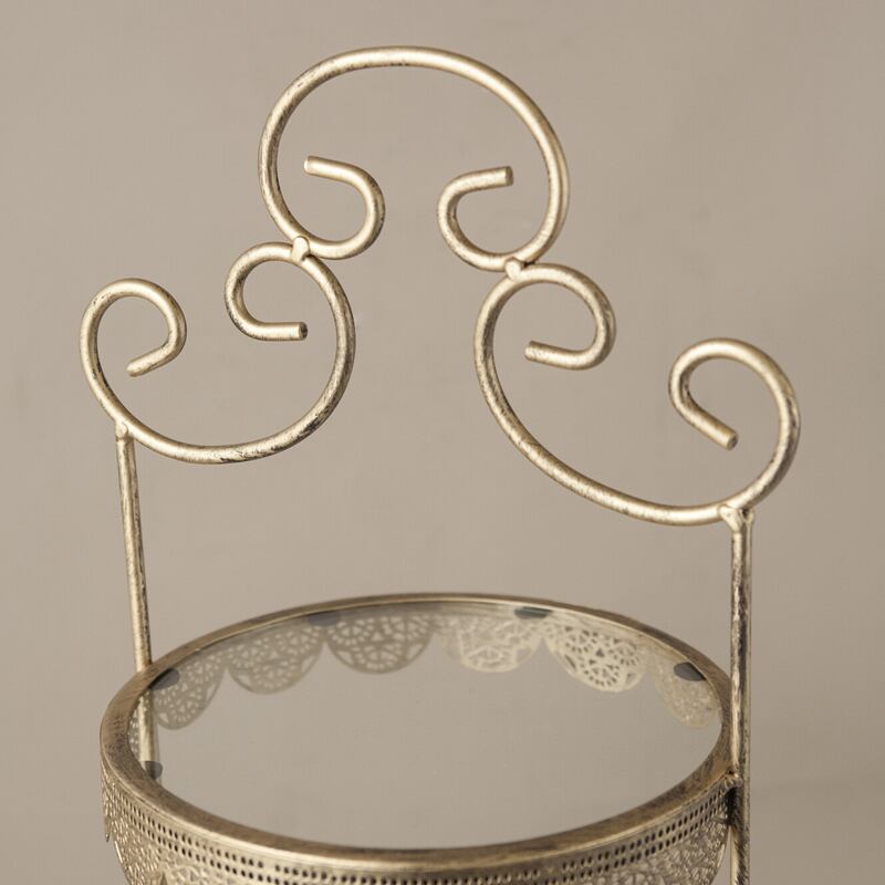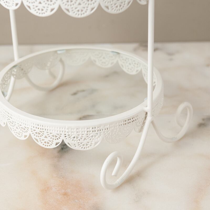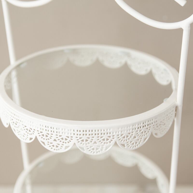 繊細な曲線とレースのような縁取りが美しいアイアン製ディスプレイトレー。