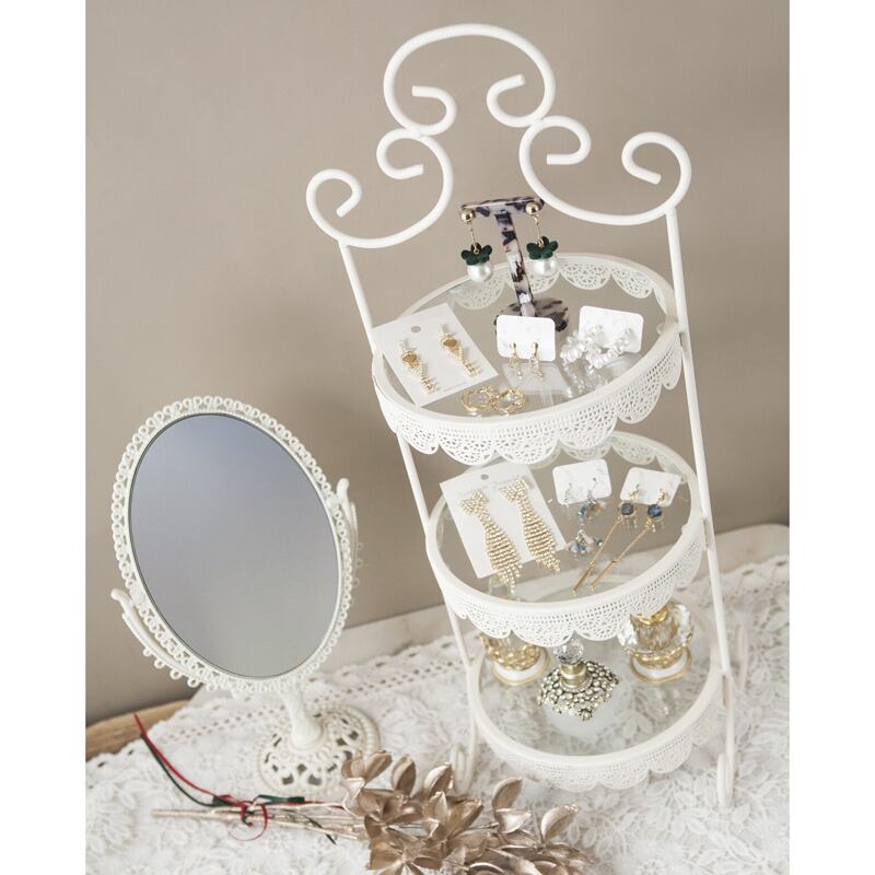 3段タイプなので、高さを活かしたディスプレイが可能。アクセサリーや小物、コスメ、アロマアイテムなどをすっきりとまとめながら、華やかに見せてくれます。