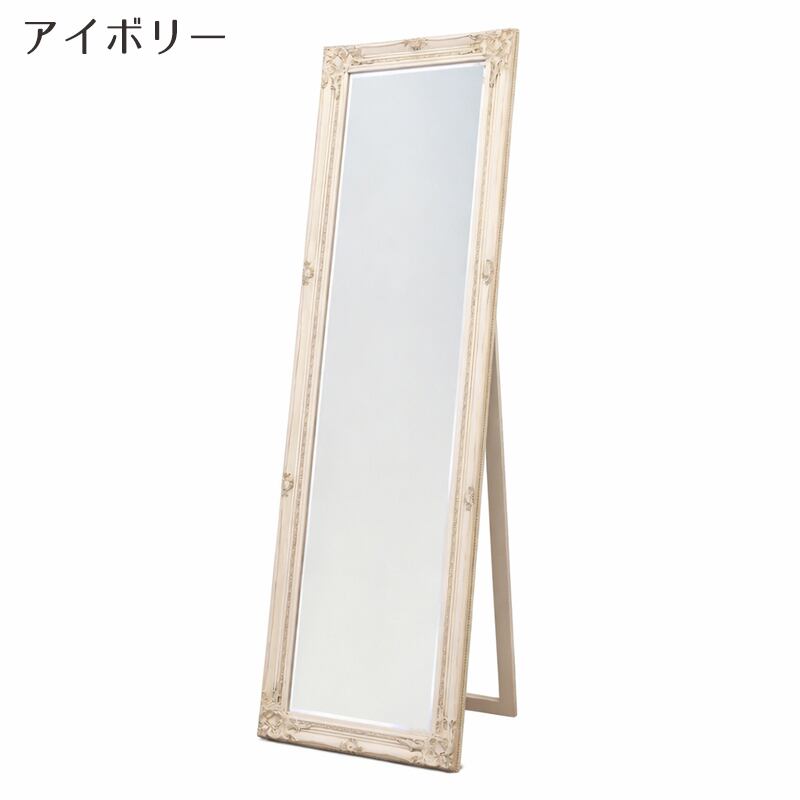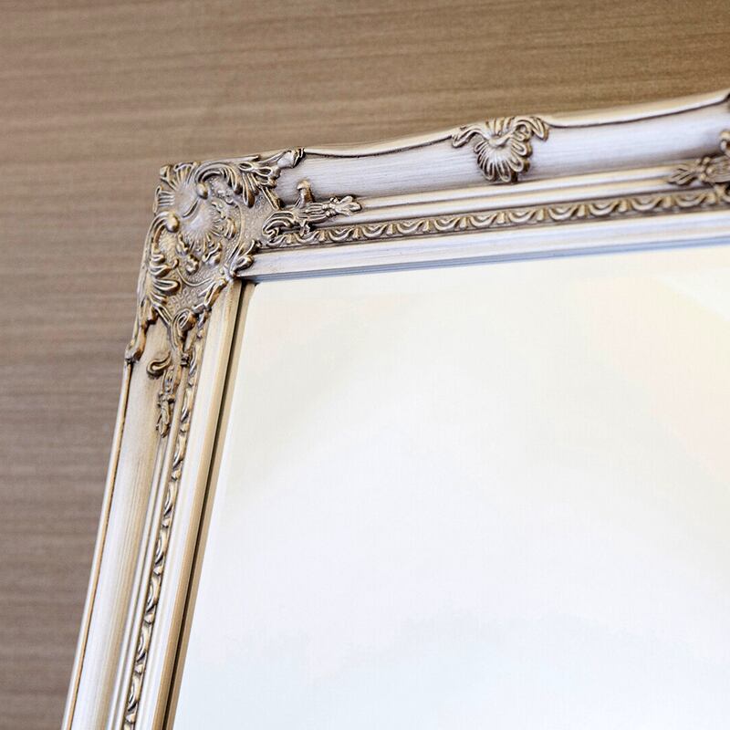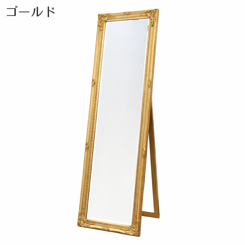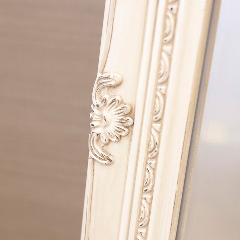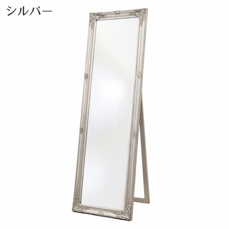 繊細な装飾が施されたフレームが美しい、クラシックデザインのスタンドミラー。