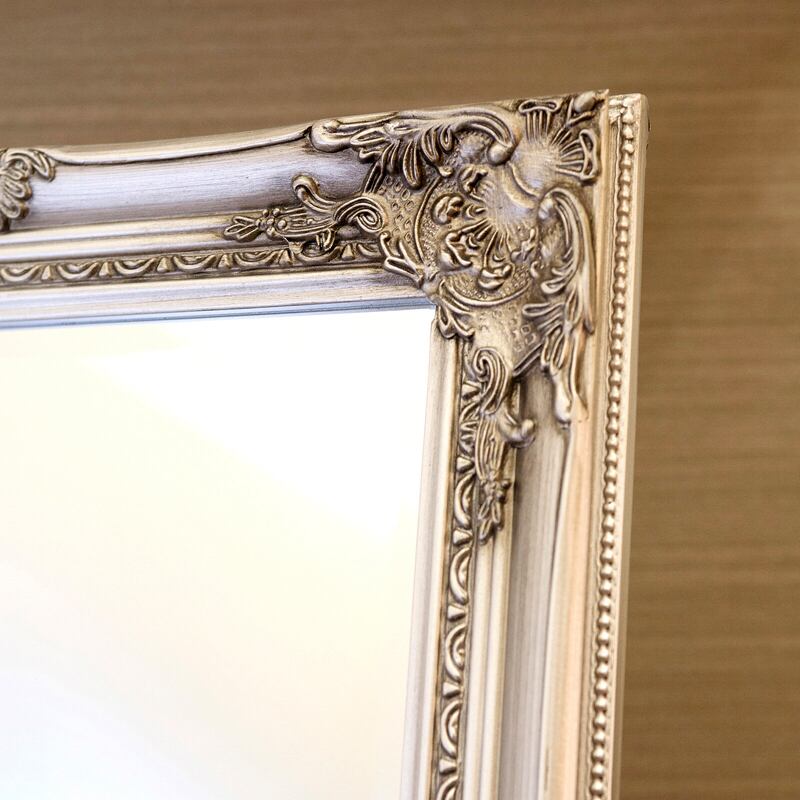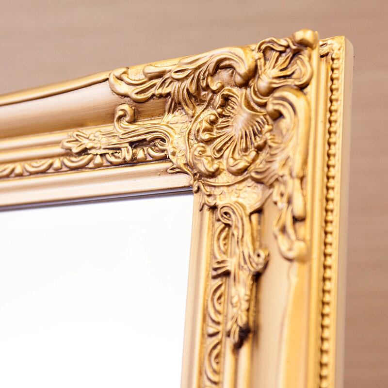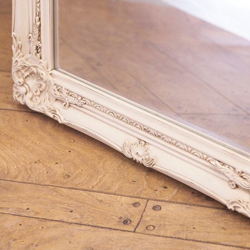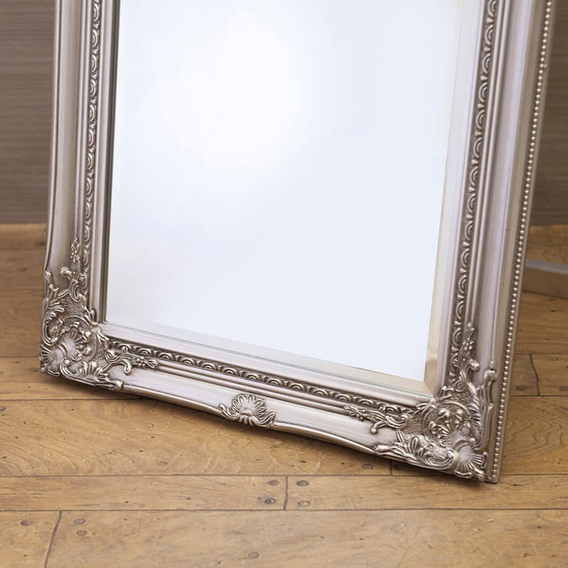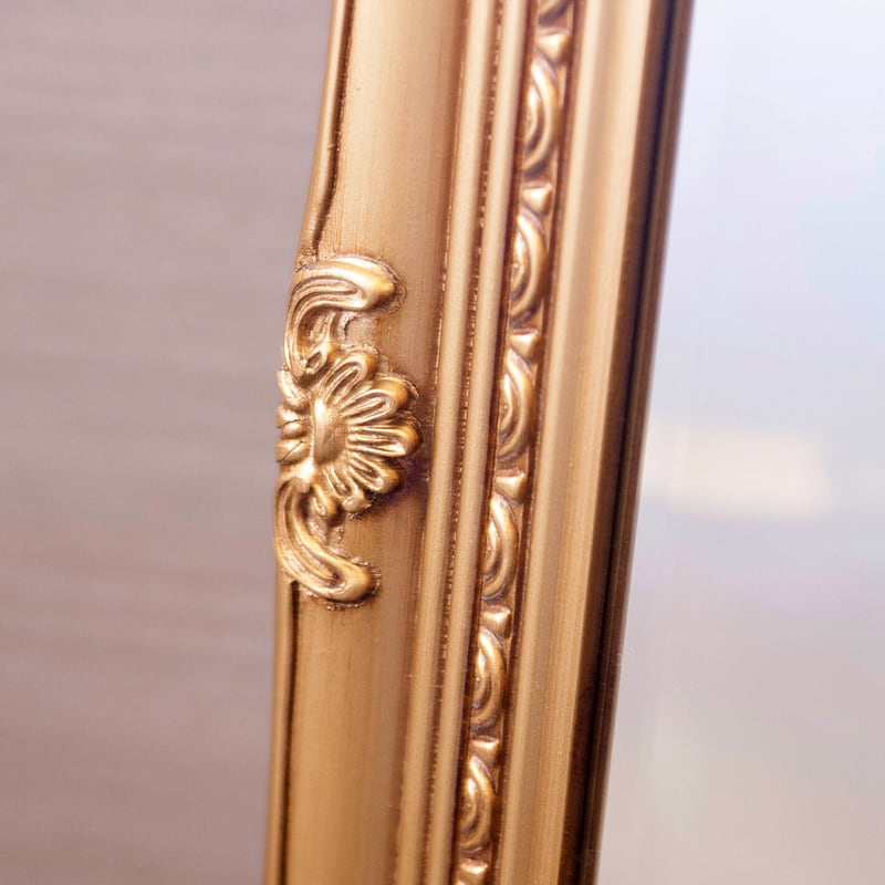 繊細な装飾が施されたフレームが美しい、クラシックデザインのスタンドミラー。