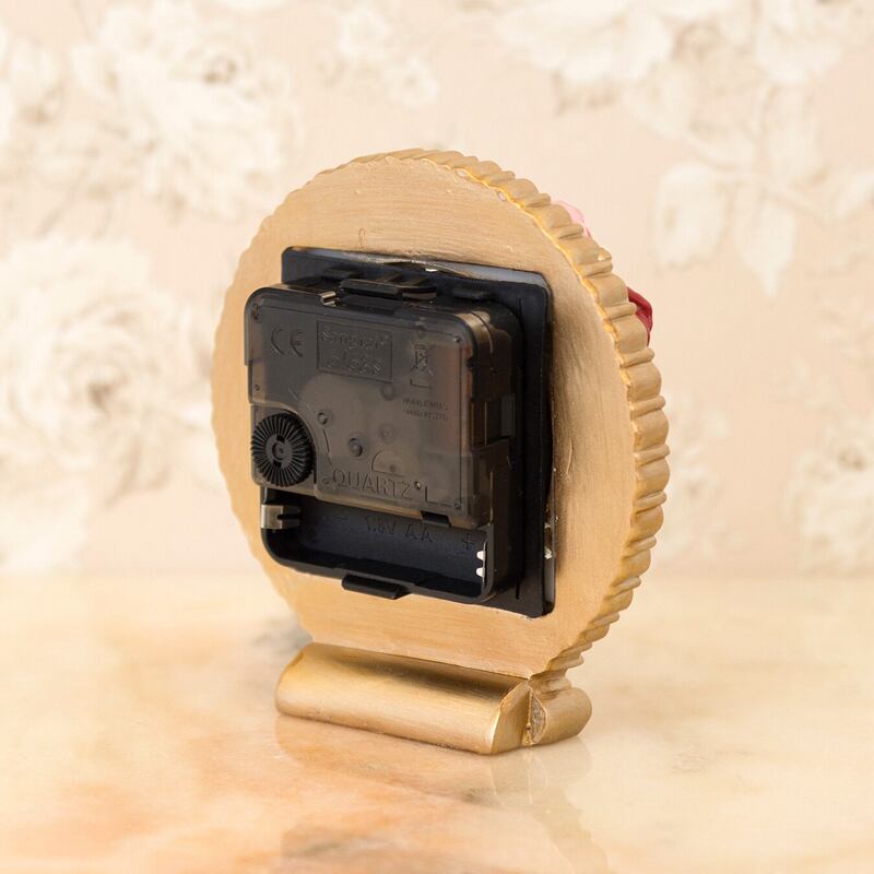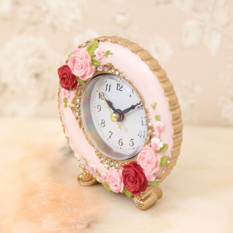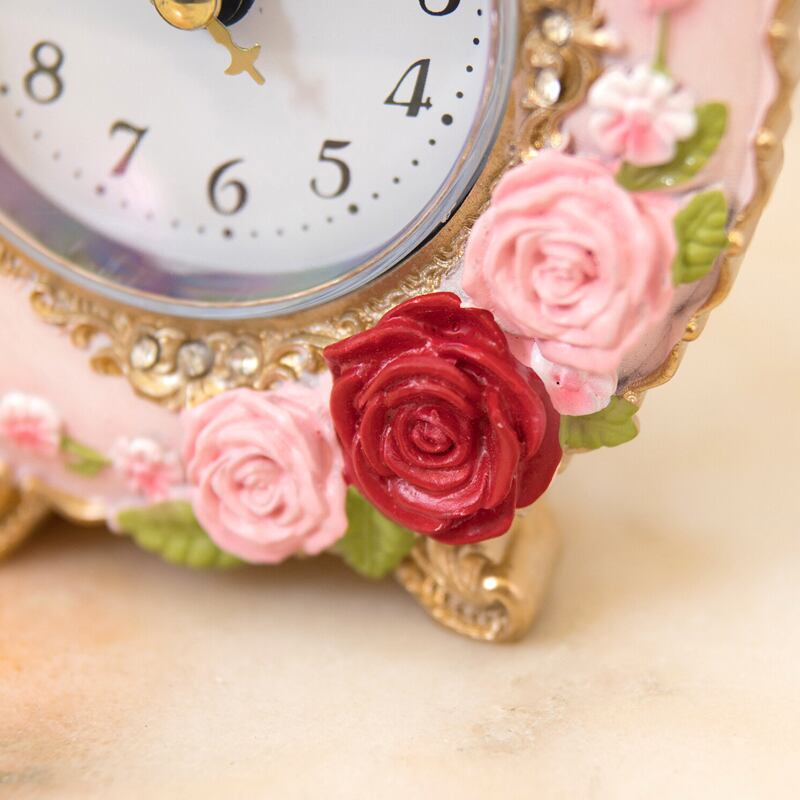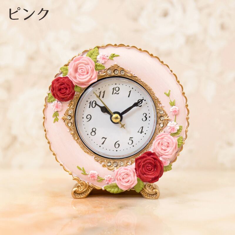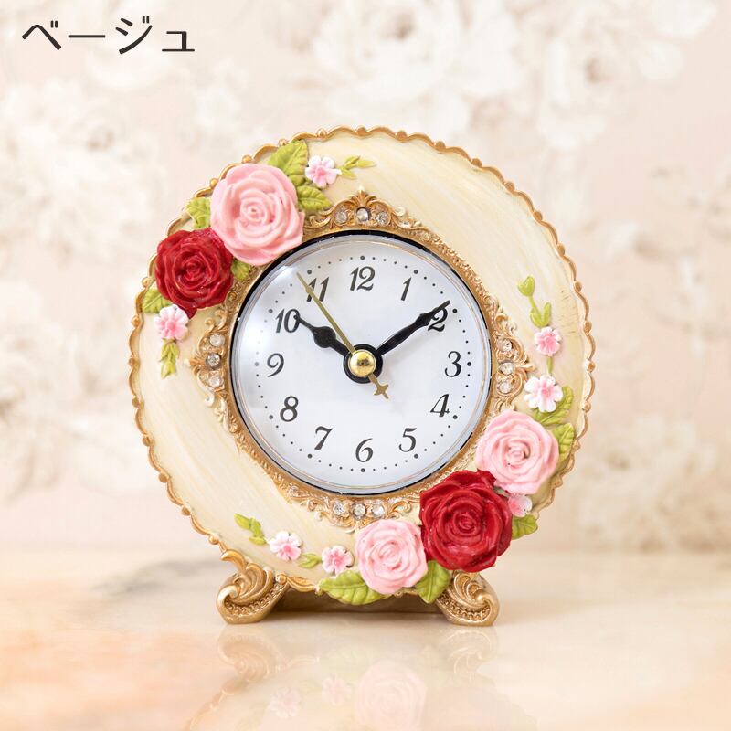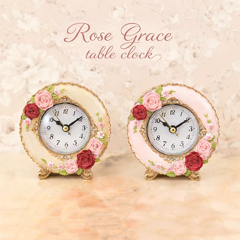 優雅に咲くローズモチーフが印象的な、可愛らしい置き時計。