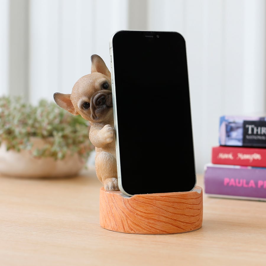手を伸ばした姿が可愛らしいフレンチブルドッグのスマホスタンド。