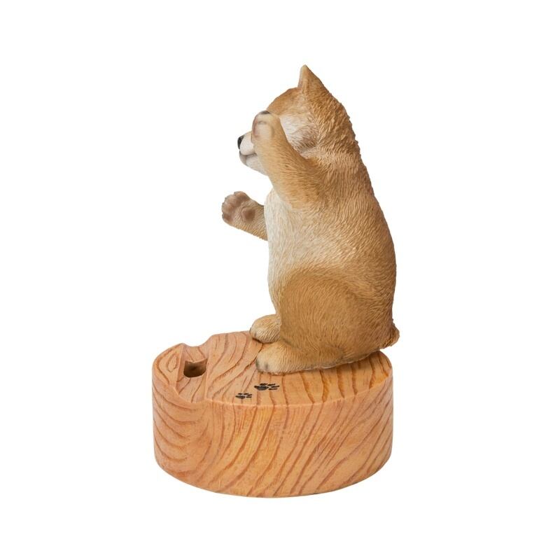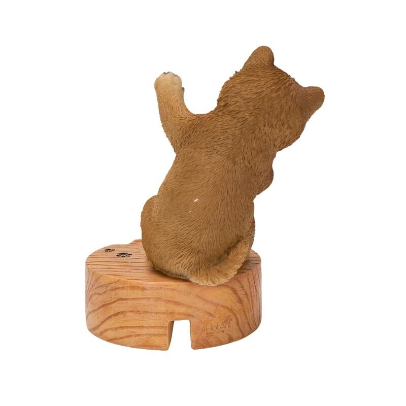 スマートフォンを立てると、ひょっこり顔を出しているようなデザインで、デスクや棚に置くだけで癒しの存在感を放ちます。ナチュラルな木目調の台座と、繊細に表現された表情や毛並みが、インテリア雑貨としても楽しめる仕上がり。