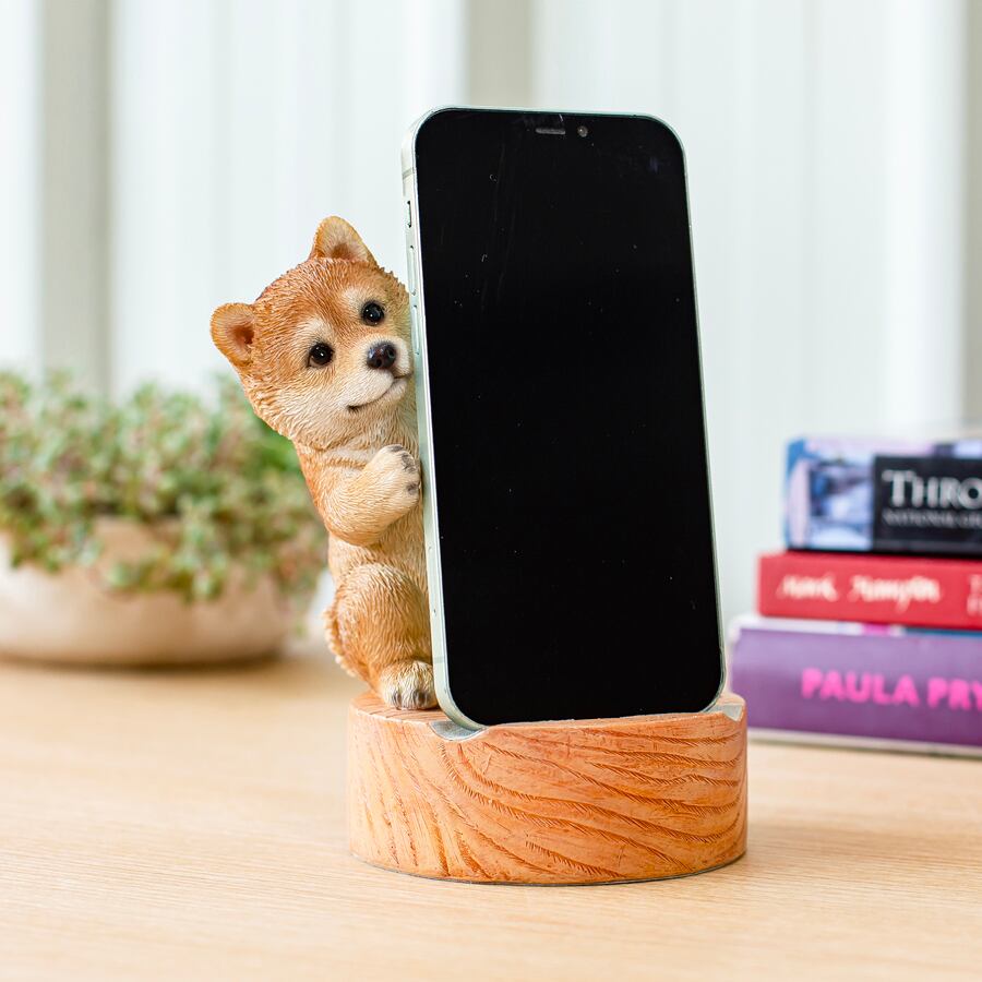 手を伸ばした姿が可愛らしい柴犬のスマホスタンド。