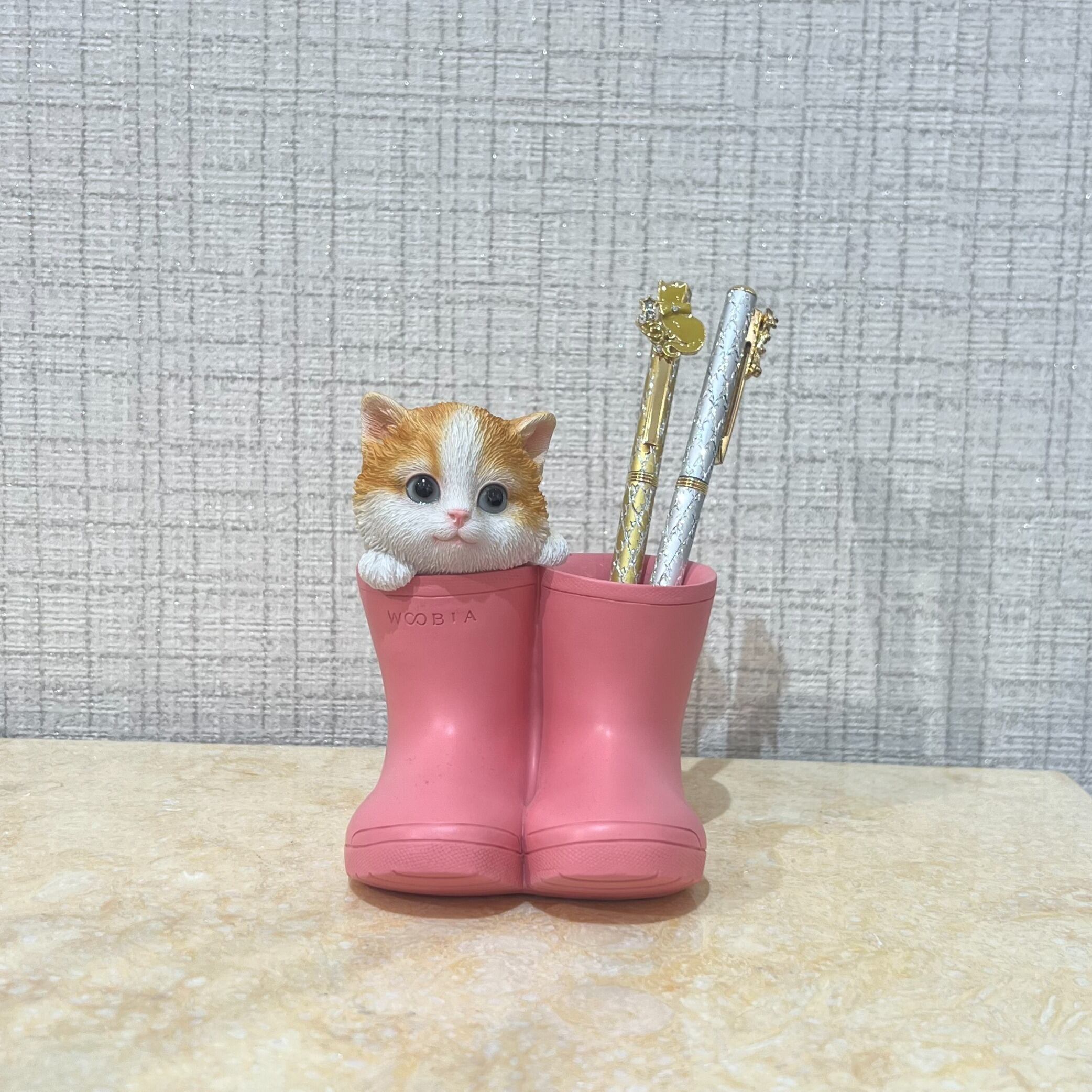 ブーツからひょっこり顔を出す可愛らしいネコのペンホルダー。