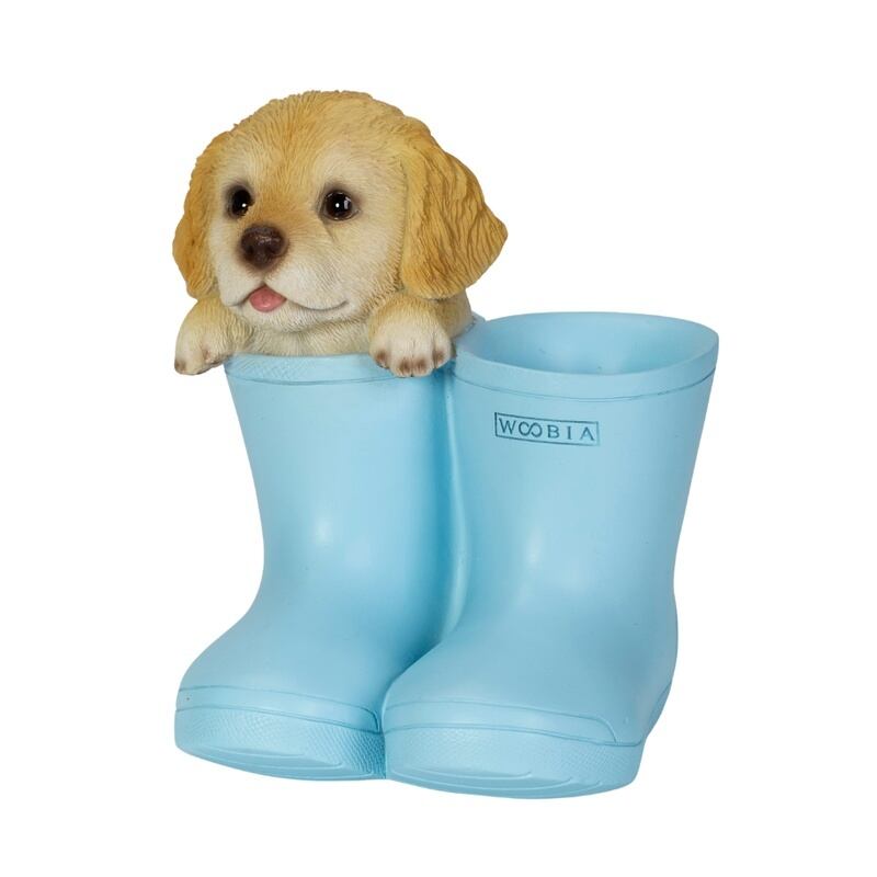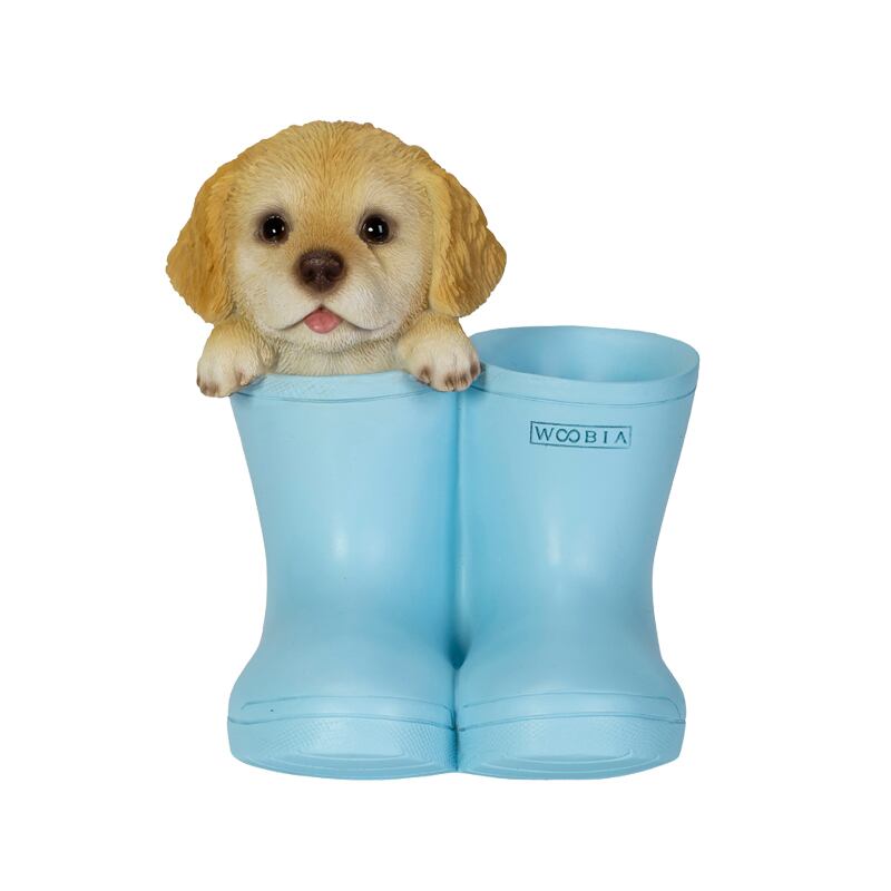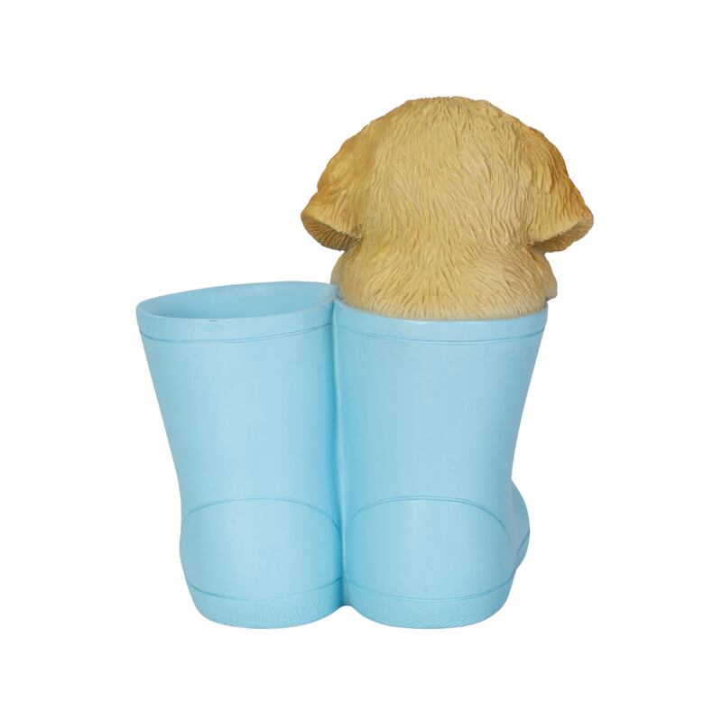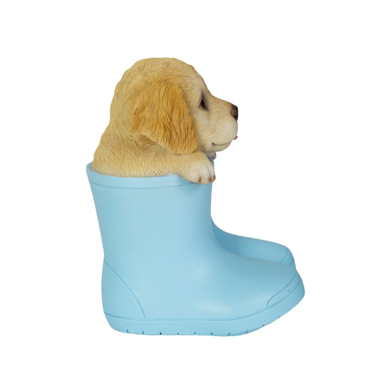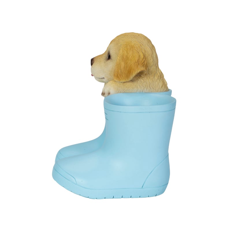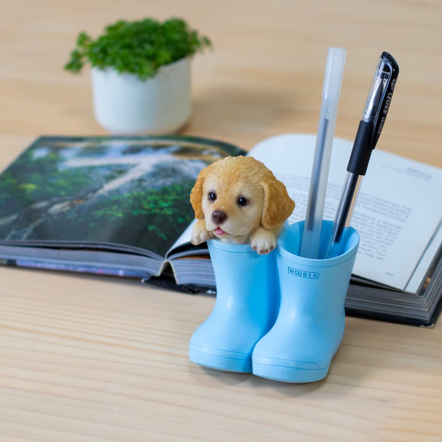 ブーツからひょっこり顔を出す可愛らしいゴールデンレトリバーのペンホルダー。