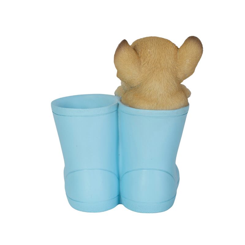 ブーツからひょっこり顔を出す可愛らしいフレンチブルドッグのペンホルダー。