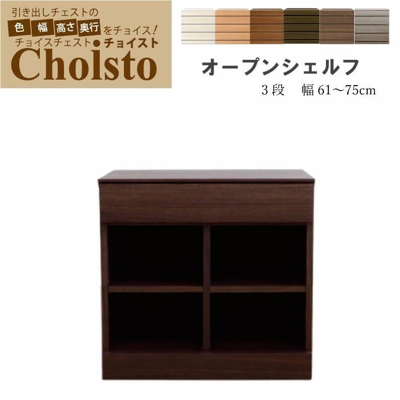 チョイスト 3段オープンシェルフ 幅61~75cm 奥行30/35/43.5cm対応 サイズオーダー家具