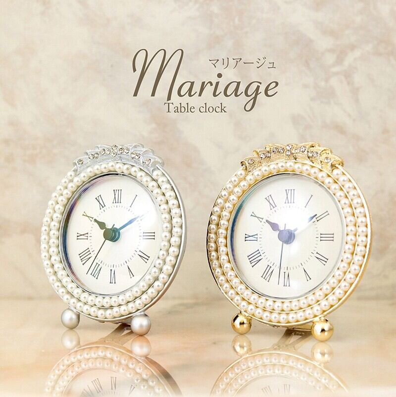 マリアージュ パールリボン 置き時計 ラウンド 輸入雑貨 REAK-C-2A