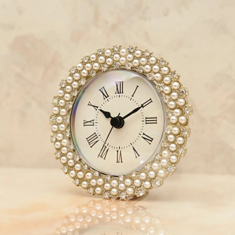 パールとビジューの気品あふれるエレガントな置き時計。